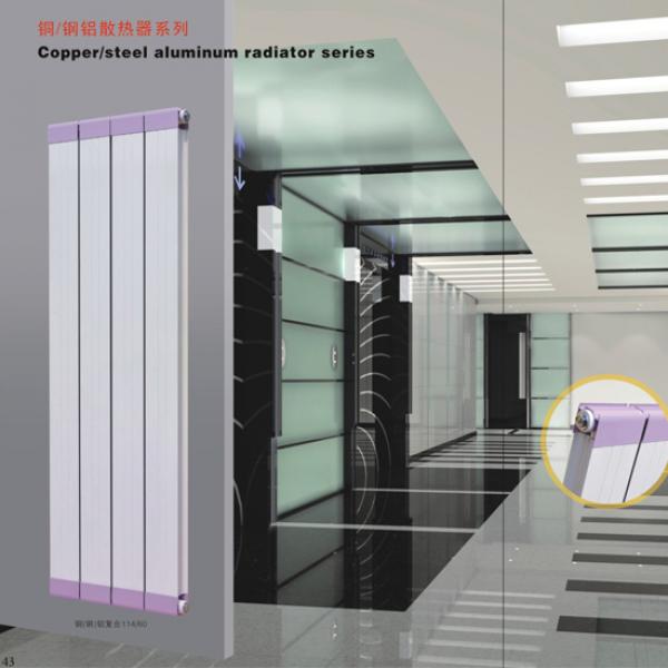 铜铝复合系列暖气片,散热器,是由铜管和铝材组合加工而成的对流型暖气片。其外观美观大方。散热器与水接触的部分即水通道全部为铜管,通过铝材与铜管紧密结合,具有高效和稳定的导热性能。铝材的作用是扩大暖气片散热面积,提高散热效果。由于暖气片内的水道均由铜管构成,所以其抗氧化腐蚀能力强,几乎适合用于所有的采暖系统。